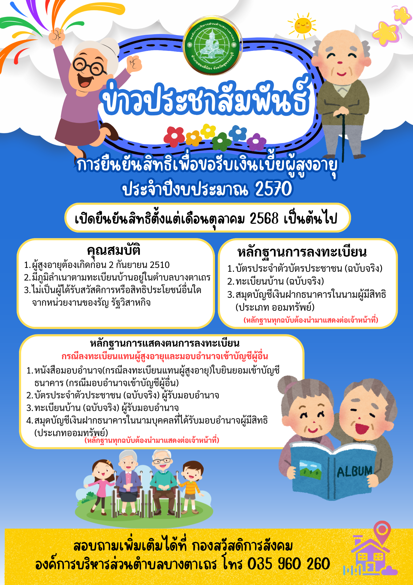 ประชาสัมพันธ์ การยืนยันสิทธิเพื่อขอรับเงินเบี้ยผู้สูงอายุ ประจำปีงบประมาณ พ.ศ. 2570
