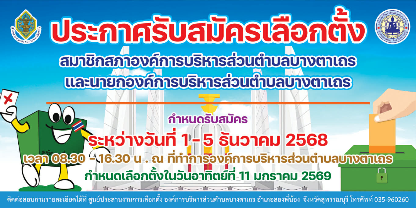 ประชาสัมพันธ์ วันที่ 1 - 5 ธันวาคม 2568 เปิดรับสมัครรับเลือกตั้งสมาชิกสภาองค์การบริหารส่วนตำบล และนายกองค์การบริหารส่วนตำบล กรณีครบวาระ |